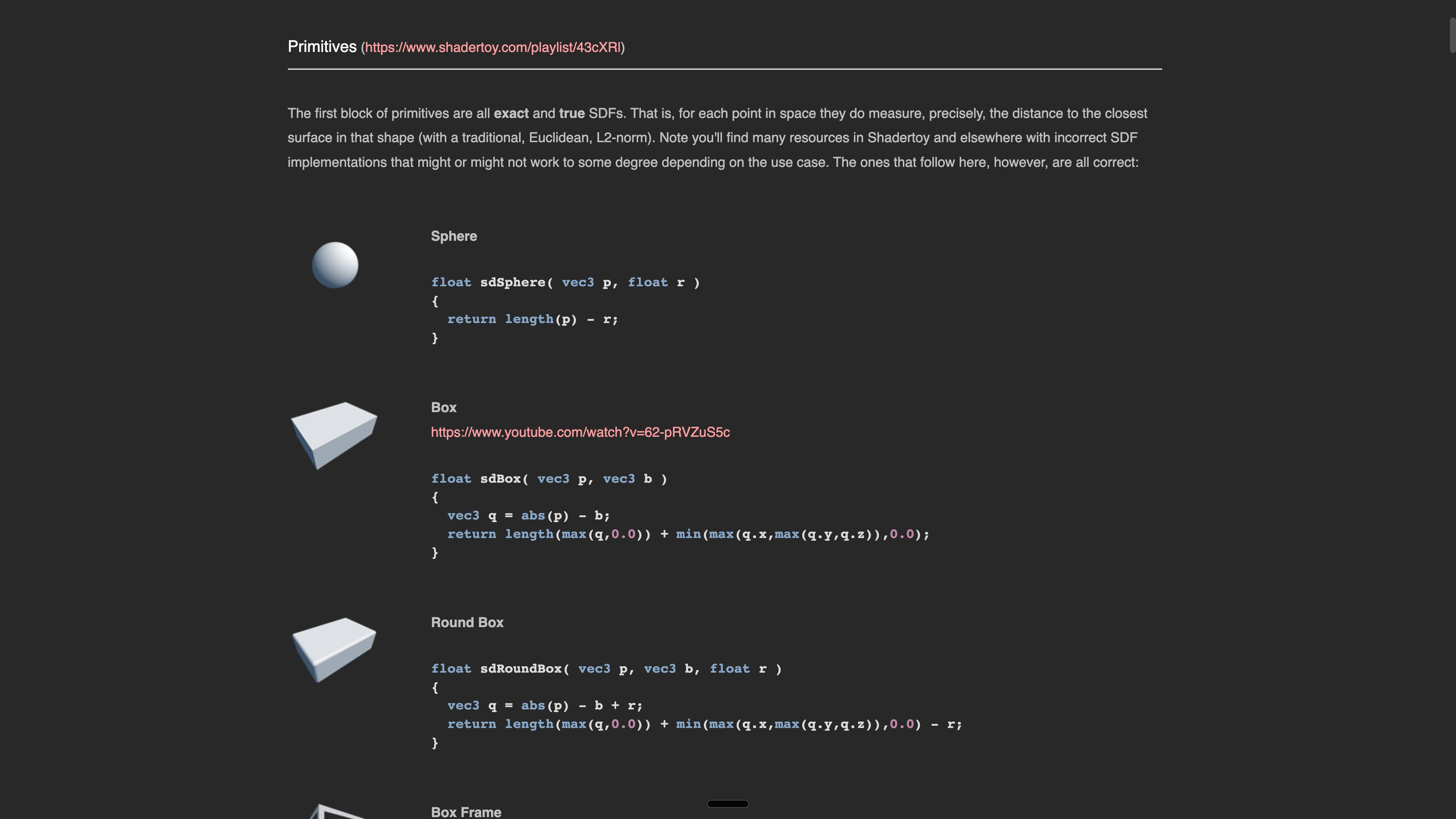 Implicit geometry fulfills both of these conditions. In the interest of brevity, for our purposes, any object can be represented as a mathematical function. Operations on these function can then be performed via code.