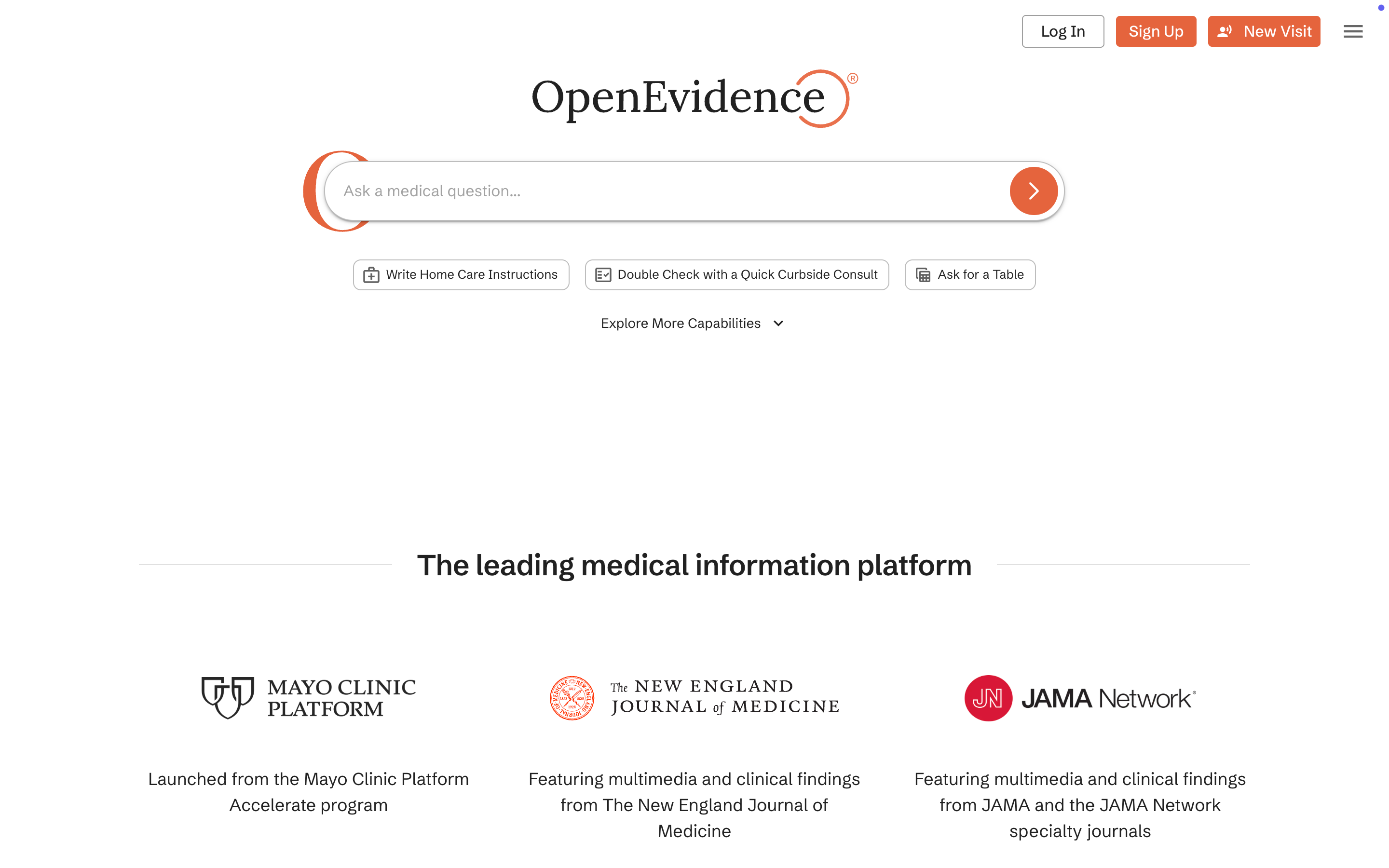 OpenEvidence is actively used across more than 10,000 hospitals and medical centers nationwide and by more than 40% of physicians in the United States who log in daily to make high-stakes clinical decisions at the point of care. OpenEvidence continues to grow by over 65,000 new verified U.S. clinician registrations each month. In July of 2024, OpenEvidence supported approximately 358,000 logged-in, verified U.S. physician consultations in one month. One year later, OpenEvidence now handles that many each workday—and supports over 8,500,000 clinical consultations by logged-in, verified U.S. physicians per month—a 2,000%+ year-over-year growth rate. More than 100 million Americans this year will be treated by a doctor who used OpenEvidence.1