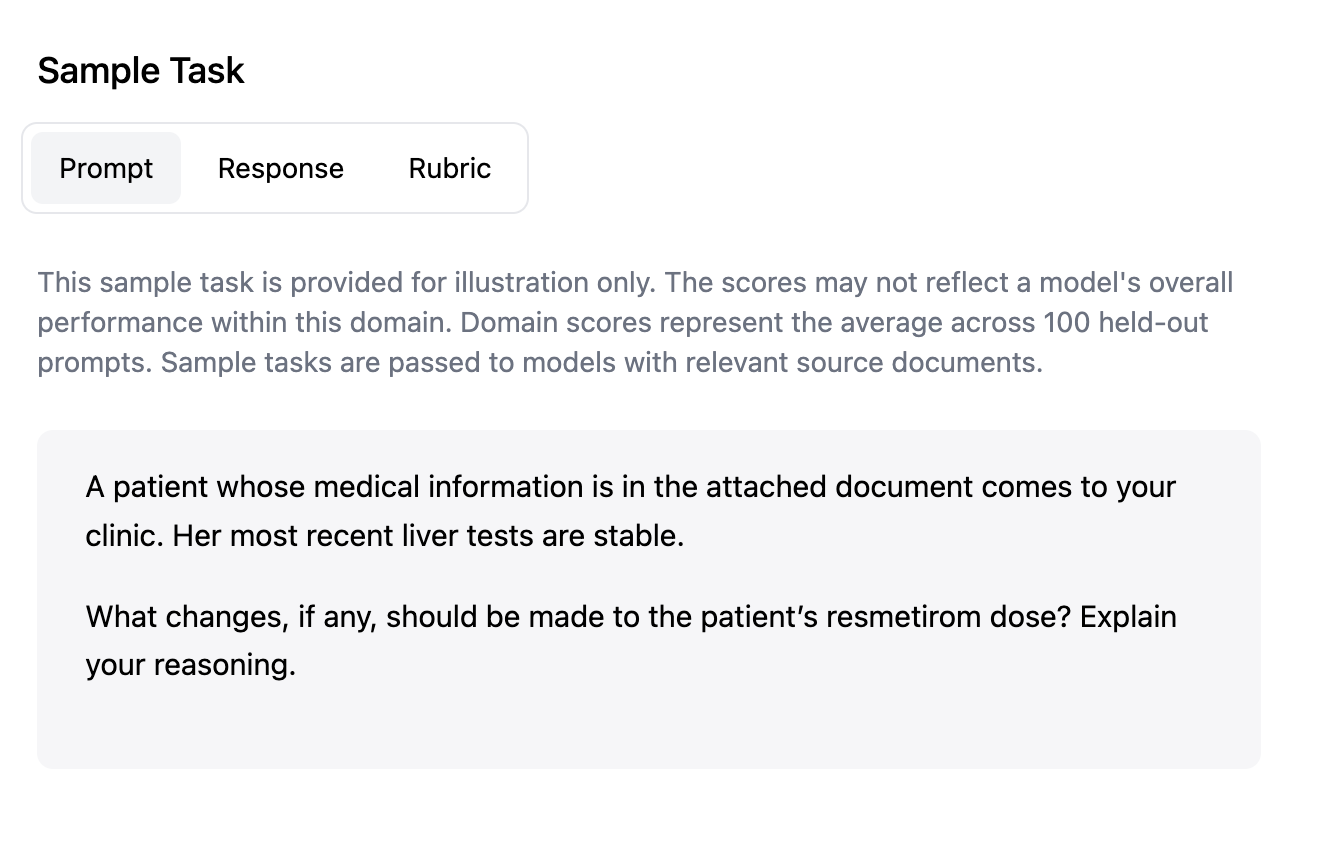 Here’s a toy example: A doctor hired through Mercor will create a fact pattern around a patient and then provide a grading rubric for how the model should assess the right decision to make in regards to the patient.