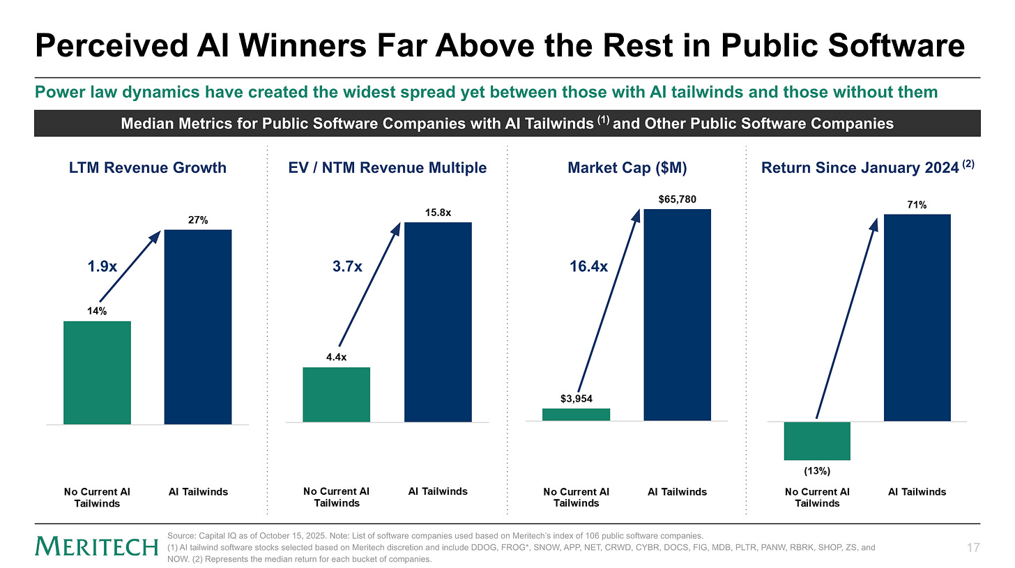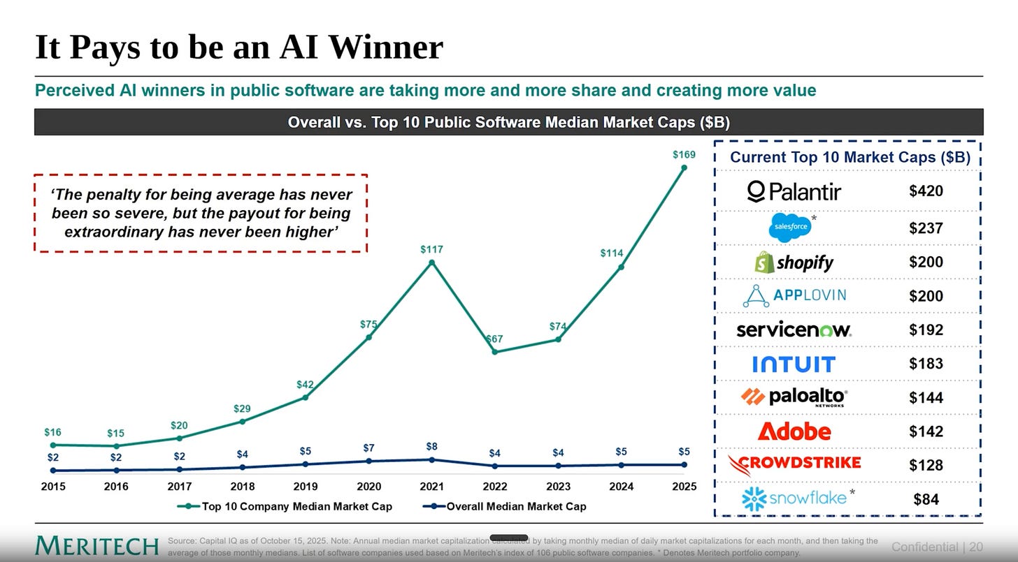 Meritech put together a 2025 Markets Update highlighting the emerging gap between software winners and losers in the AI world.